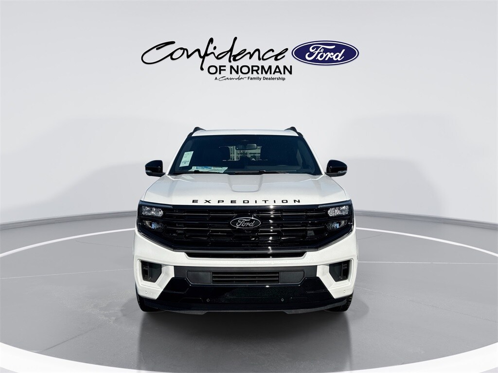 Features: Equipment Group 600A Standard Package (2nd Row Power-Folding Captain's Chairs, 3.73 Axle Ratio, BlueCruise Equipped (90-Day Trial), Ford Digital Experience, Heated and Ventilated Leather Front Captain's Chairs, Power Tilt/Telescopic Steering Wheel with Memory, Radio: B&O Sound System by Bang and Olufsen, SiriusXM with 360L, and Wheels: 20" x 8.5" Ebony Bright Machined Aluminum), Ford Connectivity Package (1-Year Included), Stealth Appearance Package (Black Belt Molding, Black Expedition Lettering on Hood, Black Headlamp Bezel with Ebony Trim Applique, Black Platinum Badge on Tailgate, Black Roof Rails, Carbon Black Front Bumper/Fascia, Rear Side Windows Laminated Glass, and Signature Grille Lighting), 10 Speakers, 3rd row seats: split-bench, 4-Wheel Disc Brakes, ABS brakes, Air Conditioning, Alloy wheels, AM/FM radio: SiriusXM with 360L, Apple CarPlay/Android Auto, Auto High-beam Headlights, Auto-dimming door mirrors, Auto-dimming Rear-View mirror, Automatic temperature control, Brake assist, Bumpers: body-color, Compass, Delay-off headlights, Driver door bin, Driver vanity mirror, Dual front impact airbags, Dual front side impact airbags, Electronic Stability Control, Emergency communication system: 911 Assist, Exterior Parking Camera Rear, Four wheel independent suspension, Front anti-roll bar, Front Bucket Seats, Front Center Armrest, Front dual zone A/C, Front License Plate Bracket, Front reading lights, Fully automatic headlights, Garage door transmitter, Genuine wood dashboard insert, Genuine wood door panel insert, Heated door mirrors, Heated front seats, Heated rear seats, Heated steering wheel, Illuminated entry, Intersection Assist, Leather steering wheel, Low tire pressure warning, Memory seat, Navigation System, Occupant sensing airbag, Outside temperature display, Overhead airbag, Overhead console, Panic alarm, Passenger door bin, Passenger vanity mirror, Power door mirrors, Power driver seat, Power moonroof: Vista Roof, Power passenger seat, Power steering, Power windows, Radio data system, Rain sensing wipers, Rear air conditioning, Rear anti-roll bar, Rear reading lights, Rear window defroster, Rear window wiper, Reclining 3rd row seat, Remote keyless entry, Security system, Speed control, Speed-sensing steering, Speed-Sensitive Wipers, Split folding rear seat, Spoiler, Steering wheel memory, Steering wheel mounted audio controls, Tachometer, Telescoping steering wheel, Tilt steering wheel, Traction control, Trip computer, Turn signal indicator mirrors, Variably intermittent wipers, Ventilated front seats, Voltmeter, and Wheels: 22" x 9.0" Magnetite Painted Aluminum.