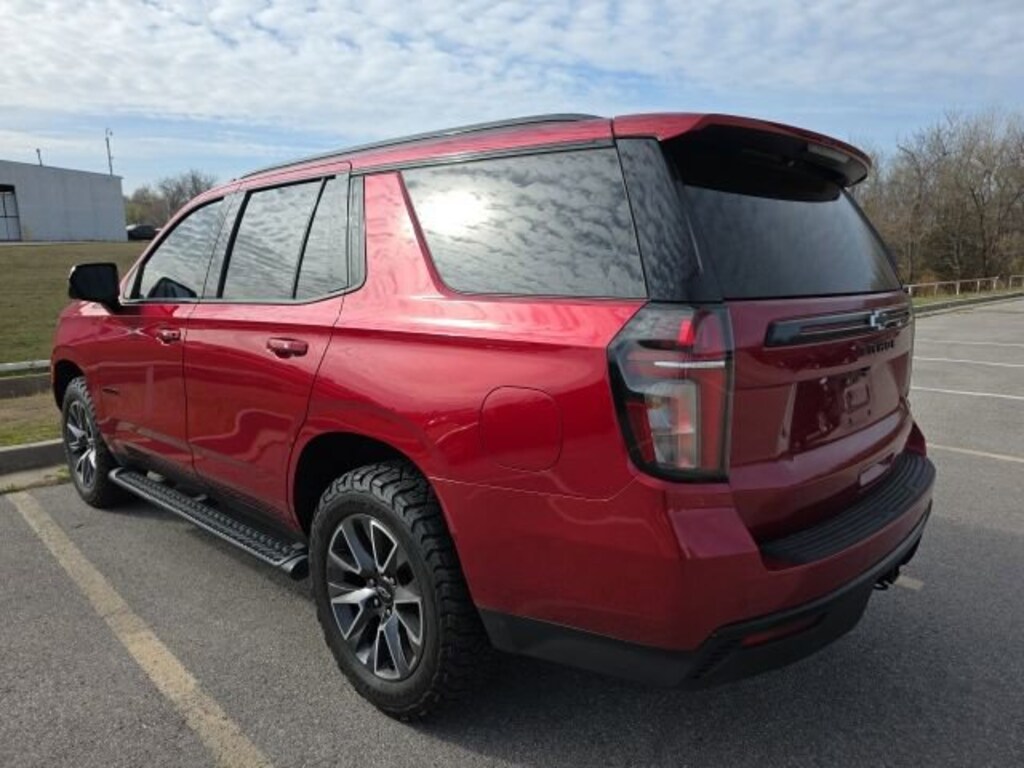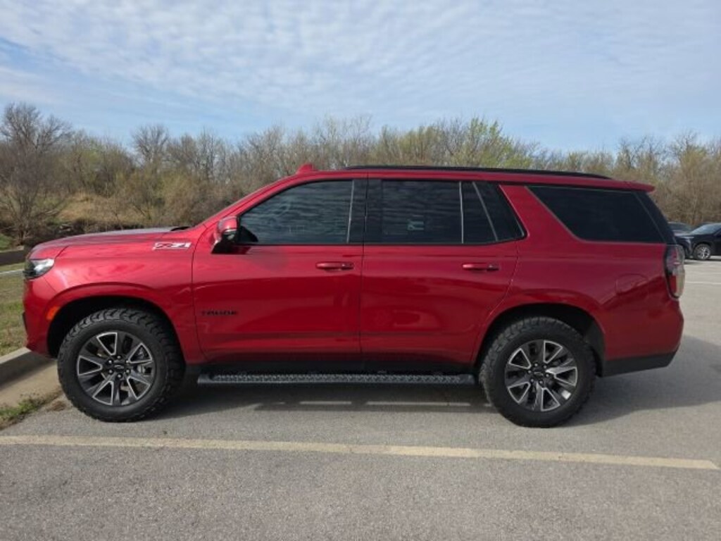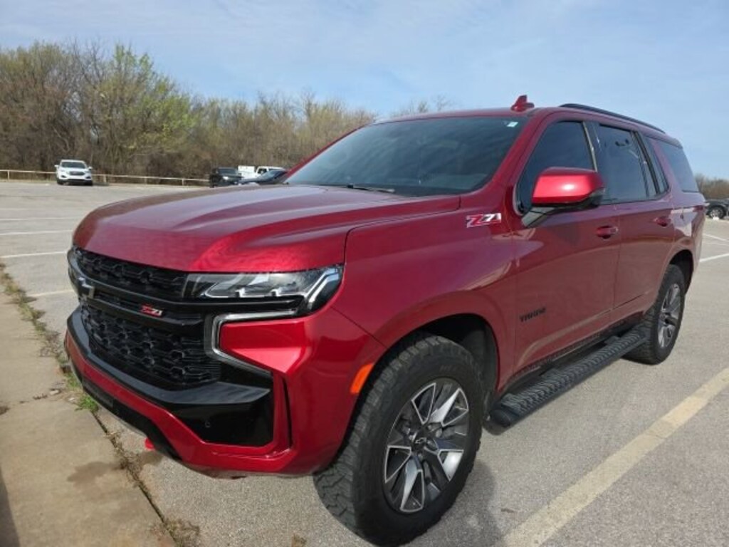 Features: , Driver Alert Package (Lane Change Alert w/Side Blind Zone Alert and Rear Cross Traffic Alert), Luxury Package (2nd Row Pwr Release 60/40 Split-Folding Bench Seat, 3rd Row 60/40 Power-Folding Split-Bench Seat, HD Surround Vision, Heated 2nd Row Outboard Seats, Heated Steering Wheel, Memory Settings, Outside Heated Power-Adjustable Mirrors, Power Tilt & Telescopic Steering Column, and Rear Pedestrian Alert), Preferred Equipment Group 2Z7 (1st & 2nd Row Color-Keyed Carpeted Floor Mats, 2-Speed Active Electronic AutoTrac Transfer Case, Auto-Dimming Inside Rear-View Mirror, Black Tubular Assist Steps, Bose 9-Speaker Stereo Audio System Feature, Bright Front & Rear Door Sill Plates, Color-Keyed Carpeting Floor Covering, Driver & Front Outboard Passenger Airbags, Enhanced Driver Information Center, Floor Console w/Storage Area, Front High-Approach Angle Fascia, Hands-Free Rear Power Programmable Liftgate, Hill Descent Control, Infotainment Display, LED Daytime Running Lamps, Memory Settings for Driver, Red Horizontal-Mounted Recovery Hooks, Remote Start, SiriusXM Radio w/360L, Universal Home Remote, Wireless Charging, and Wrapped Steering Wheel), Tahoe Z71 Luxury, EcoTec3 5.3L V8, 4WD, Radiant Red Tintcoat, Jet Black w/Leather-Appointed Seat Trim, 10-Way Power Driver & Passenger Seat Adjusters, 3.23 Rear Axle Ratio, 3rd row seats: split-bench, 4-Wheel Disc Brakes, 9 Speakers, ABS brakes, Air Conditioning, Alloy wheels, AM/FM radio: SiriusXM with 360L, Apple CarPlay/Android Auto, Auto High-beam Headlights, Auto-dimming Rear-View mirror, Automatic temperature control, Brake assist, Bumpers: body-color, Compass, Delay-off headlights, Driver door bin, Driver vanity mirror, Dual front impact airbags, Dual front side impact airbags, Dual-Pane Power Panoramic Sunroof, Electronic Stability Control, Emergency communication system: OnStar and Chevrolet connected services capable, Floor Console, Four wheel independent suspension, Front anti-roll bar, Front Bucket Seats, Front Center Armrest, Front dual zone A/C, Front High-Back Reclining Bucket Seats, Front reading lights, Fully automatic headlights, Garage door transmitter, Heated door mirrors, Heated Driver & Front Passenger Seats, Heated front seats, Illuminated entry, Illuminated Mirror Chevrolet Emblem (LPO), Leather-Appointed Seat Trim, Low tire pressure warning, Memory seat, Navigation System, Occupant sensing airbag, Outside temperature display, Overhead airbag, Overhead console, Panic alarm, Passenger door bin, Passenger vanity mirror, Power door mirrors, Power driver seat, Power Liftgate, Power passenger seat, Power Release 2nd Row Bucket Seats, Power steering, Power windows, Premium audio system: Chevrolet Infotainment 3 Premium, Premium Smooth Ride Suspension, Radio: Chevrolet Infotainment 3 Premium System, Rain sensing wipers, Rear air conditioning, Rear anti-roll bar, Rear reading lights, Rear seat center armrest, Rear window defroster, Rear window wiper, Remote keyless entry, Roof rack: rails only, Security system, Speed control, Speed-sensing steering, Split folding rear seat, Spoiler, Steering wheel mounted audio controls, Tachometer, Telescoping steering wheel, Tilt steering wheel, Traction control, Trip computer, Variably intermittent wipers, Voltmeter, and Wheels: 20 x 9 Machined Aluminum.
